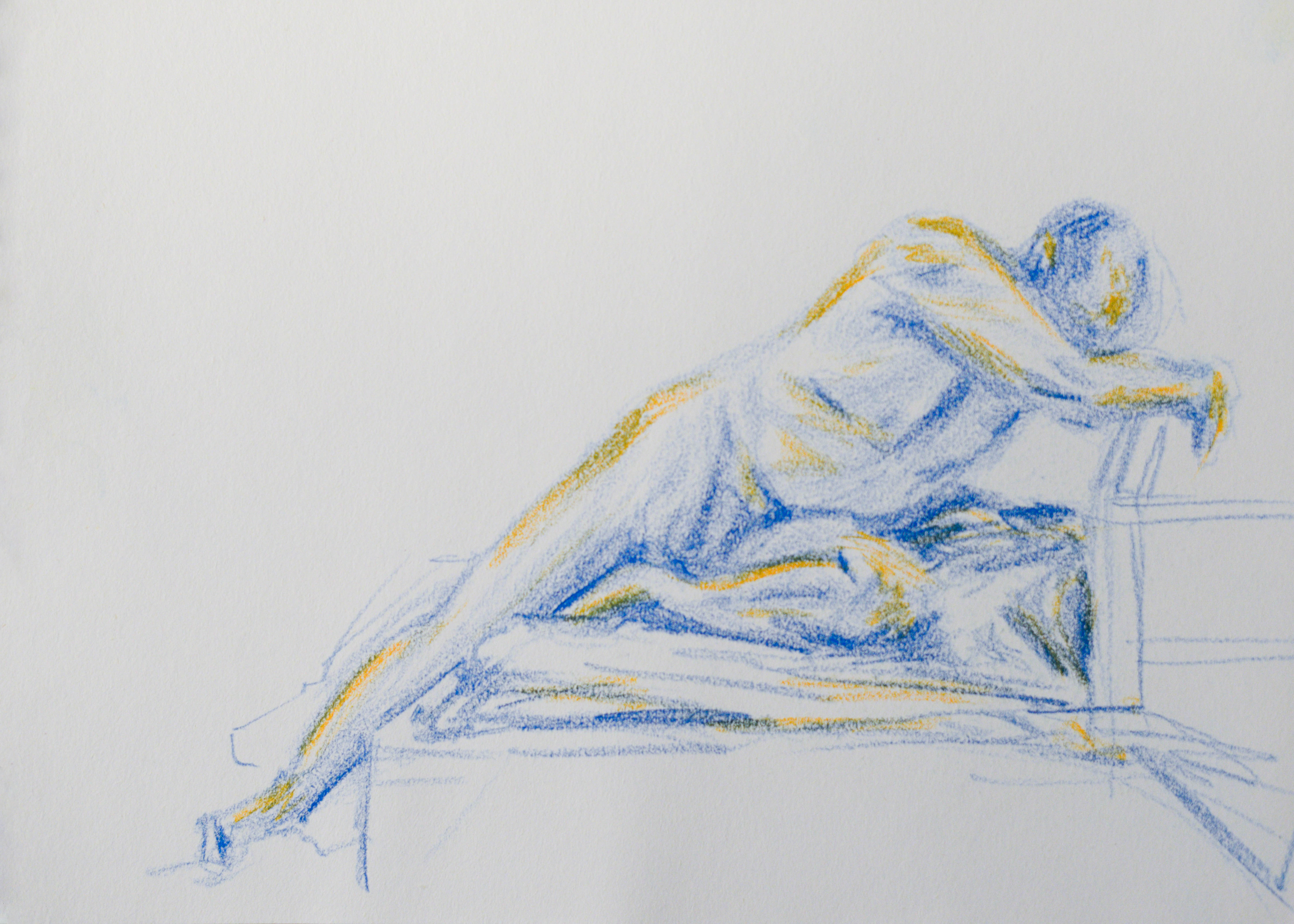 The discovery and exploration of this technique is very recent for me. I tested it seriously for the first time during a class when my teacher told us to bring something else than pencil to draw a live model. And since then, I love it. I never have to worry to put too much details or that it's not colorful enough. Plus, the pastels I use are my mom's old ones from when she was a student too mich make it eve, more enjoyable.