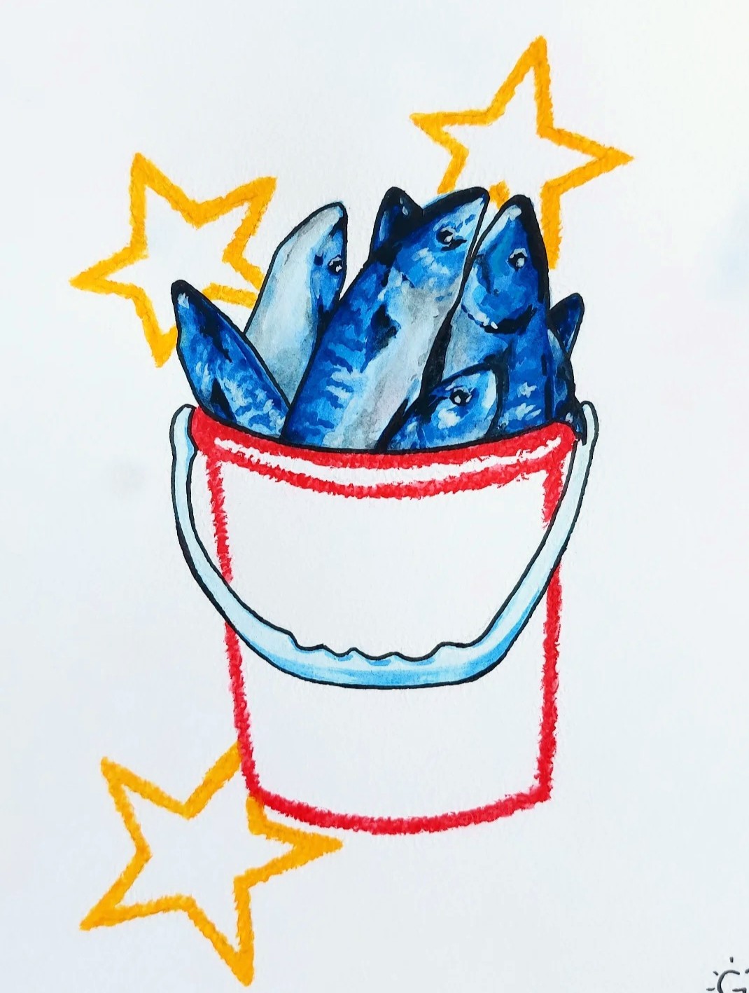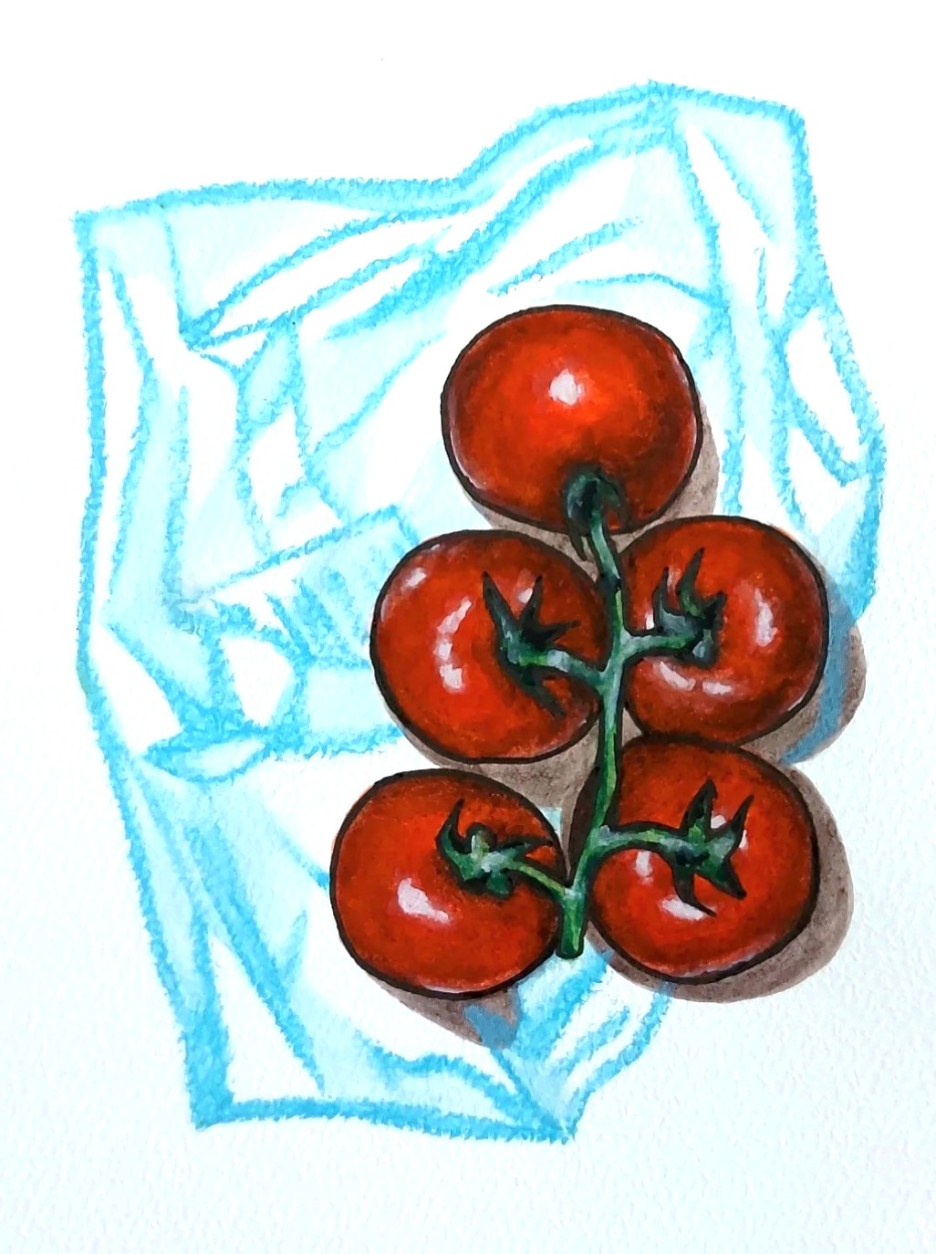 This is, I think, my favourite technique. I'm using a Winsor and Newton palette wich is really qualitative and have really good pigments. One of the thing I love to paint with this technique is colorful food beacuse I can have so much fun mixing all the colors together.